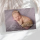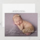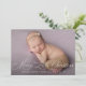 lovely white script design with a lovely newly born baby photo, the image and text detail of this card can be personalised.