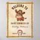Little cowboy cute baby horse in a hat baby shower welcome sign. Rustic vintage western style.