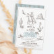 This retro and chic "a little cowboy is on the way" boy baby shower invitation features a cowboy on a horse, eagle, cactus, cowboy hat and skull. The reverse side features a baby blue background with cactus patterns. Personalise for your needs. You can find matching products at my store.