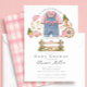 Celebrate your little cowgirl with this charming western baby shower invitation! Featuring a soft watercolor design with a pink plaid shirt, denim overalls, cowboy boots, hat, and rustic western elements, this invitation is perfect for a girl baby shower. The coordinating blush pink flannel plaid back adds a cozy, feminine country touch. Ideal for cowgirl, western, rodeo, or rustic baby shower themes, this design blends sweet farmhouse style with modern elegance. Fully customizable to create a memorable and unique celebration.