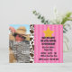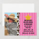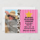 This fun cowgirl western party invitation features a pink striped background, black and white cow print trim, customisable text, and room for your child's photo.