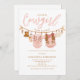 This sweet Little Cowgirl Baby Shower Invitation features a watercolor clothesline with pink cowgirl outfits, tiny boots, and soft western details. Blush tones and elegant typography create a warm, charming look—perfect for a western or country-themed baby shower. Easily personalize with your own event information.