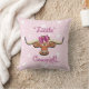 Personalise this Western "One of a Kind" Little Cowgirl Pillow! It Features a Comical Longhorn Cow Wearing a Pretty Purple Bow on a Light Pink and White Star Background and Surrounded by the Words...."Little Cowgirl"