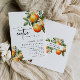 A little cutie is on the way baby shower invitation that features watercolor orange graphics and a modern font. This stylish invitation is easy to edit and is perfect for a little cutie or citrus themed baby shower.