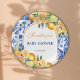 Elegant watercolor citrus-themed baby shower paper plates. The design features watercolor illustrations of oranges, clementines, lemons and green leaves, against a charming tiled background for a summer Mediterranean feel. Use the design tools to customise the text, fonts and colour.