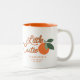 Thank your guests with a sweet and practical keepsake using this “Little Cutie” baby shower favour mug. Featuring watercolor clementines and playful script, this two-tone coffee mug is perfect as a party favour, thank-you gift, or special keepsake for the mum-to-be. Ideal for citrus-themed baby showers, spring or summer events, and gender-neutral celebrations. Customise with names, dates, or a special message for a personal touch.