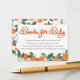 Invite guests to help build baby’s first library with this charming “Little Cutie” books for baby card. Featuring watercolor clementines and soft greenery, it’s a sweet citrus-themed touch for your baby shower stationery set.