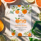 This design features hand painted watercolor oranges and greenery.