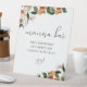 watercolor oranges and greenery theme with lovely black script, baby shower momosa bar sign