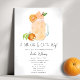 Fruit smoothie themed baby shower featuring illustration of orange smoothie topped with orange slice. Text says, "A little cutie is on the way"