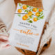 Cute little cutie theme baby shower thank you template card featuring watercolor illustration of orange fruits on a tree branch. The text says "Thank you for showering our little cutie." The default message thanks the guests for attending the shower and for the gift. Gender neutral design.