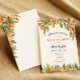 This sweet "a little cutie is on the way" baby shower invitation features a beautiful watercolor composition of orange tree branches and orange blossoms.