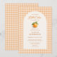 Little Cutie themed baby shower invitation featuring bright orange accents and a gingham pattern for a cheerful, fresh look. Designed to celebrate a sweet baby on the way with a playful citrus inspired style. Ideal for baby showers, gender neutral celebrations, and summer gatherings. Editable text. Clean print-ready layout.