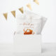 Warm up your hearts this fall with a charming baby shower favour bag featuring soft peach stripes, a sweet slice of pumpkin pie, and fluttering hearts all around. With the whimsical message “a cutie pie is baking” front and centre.
