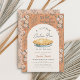This cute "a little cutie pie is on the way" girl baby shower invitation features a pie in an arch shape on an orange background with floral patterns. The reverse side features a light apricot background with floral patterns. Personalise it for your needs. You can find matching products at my store.