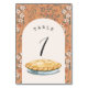 This cute "a little cutie pie is on the way" girl baby shower table number features a pie in an arch shape on an orange background with floral patterns. Personalise it for your needs. You can find matching products at my store.