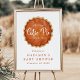 Welcome friends and family to your fall baby shower with this rustic welcome sign poster featuring a whimsical white script that reads “A Little Cutie Pie is on The Way!” alongside a charming watercolor pumpkin pie illustration. Perfect for a gender-neutral pumpkin-themed baby shower, this autumn-inspired design features warm terracotta and golden brown tones for a cosy, seasonal charm. Available as a printed poster, a digital download, or both, this versatile baby shower sign makes it easy to create a beautiful entrance display that sets the tone for your celebration.