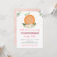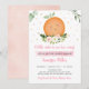 This invitation features lush watercolor greenery with a cute clementine.