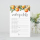 Little Cutie themed wishes for baby game that features watercolor orange graphics and a modern font. It is perfect for a gender neutral citrus themed baby shower and you can pair it with anything in the BRINLEY collection for a cohesive look.