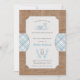 Adorable updated rustic boy baby shower invitation featuring a sweet plaid deer and blue antlers with wood background.