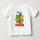 Little Dino 3rd Birthday T-shirts, bodysuits, cards, stickers, birthday buttons, tote bags, keepsakes, and other dinosaur 3rd birthday apparel and gifts featuring a green smiling dinosaur with balloons, party hat, and a gift!