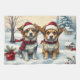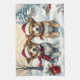 Little Dogs in Preppy Winter Attire and Hat Winter Tea Towel