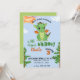 The invitation features a darling watercolor illustration of an adorable baby dragon and trees. The background is a soft sage green.