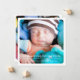 "We dreamed a little dream... and he came true" - Thoroughly modern and simply elegant, this design features two large photos of your baby framed in a white border one on the front and one on the back. The front also holds baby's important information, and on the back there is text that can be customised or left as is.
