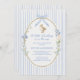 A charming blue bow gracefully sits atop the frame, adding a touch of elegance and completing the cottage-inspired look. The invitation features whimsical handwritten font elements, lending a personal and intimate feel to your announcement. This delightful script beautifully complements the overall design, inviting guests with warmth and charm.