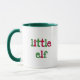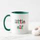 Little Elf holiday T-shirts, bodysuits, tote bags, and more with bright red and green kid style text.
