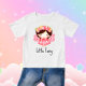 Beautiful, cute, along great material, and quality. Material of the shirt is durable so that one can pass it along to another child after the baby gets bigger. Top notch job on the printing. Visually good in person.