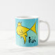 Take a swig of your favourite drink from this silly Little Fish Big Fish Funny Mug. One side has a small goldfish and large text "Little Fish", the other side has a large goldfish with "Big Fish" written small against a blue watercolor background. Have fun with this funny ironic cup.