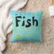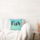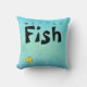 Lay your head on this silly Little Fish Big Fish Funny Pillow. One side has a small goldfish and large text "Little Fish", the other side has a large goldfish with "Big Fish" written small against a blue watercolor background. Have fun with this funny ironic pillow.
