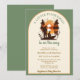 This design is styled in a soothing sage green and cream color palette, accented with warm sunset tones of burnt orange and rich brown. The soft green border adds an earthy, calming feel that’s perfect for modern rustic celebrations while remaining classic and timeless. The serene lake scene, silhouetted pine trees, and glowing sunset make this invitation ideal for fishing-themed, outdoorsy, cabin, lake house, woodland, rustic, or fall baby shower themes.