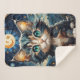 Little Fluffy Kitten Night Sky Stained Glass Sherpa Blanket