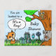 Cute whimsical hand drawn Woodland Creature or Forest Animals themed boy's baby shower invitations.