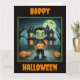 An adorable little Frankenstein monster is ready for Halloween in this cute and fun Halloween card. Add your own personalised text.
