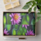 A fun cute little Frog resting on beautiful colorful Lily pads.