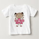 An adorable little girl in pigtails and a pink dress holds a string of letters that spell out "TWO" on 2nd birthday T-shirts, bodysuits, cards, stickers, bags, and much more!