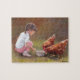 Little Girl Feeding Chickens Original Art Puzzle;e Jigsaw Puzzle