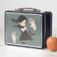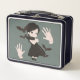 Little girl in black dress metal lunch box