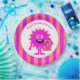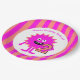 Little Girl Monster 2nd Birthday Pink Stripes Cute Paper Plate