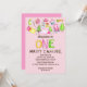 Throw the perfect One Happy Camper themed birthday party for your little girl. These invites feature watercolor illustrations of various camping gear and accessories set against a pretty pink background and are ready to be customised with your party details.