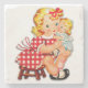 Girl and a Doll - This little girl holds her baby doll. A retro vintage image.
