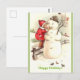 Little Girl Whispering to Snowman Happy Holidays Postcard