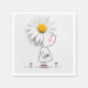 A playful illustration features a simple line drawing of a little girl with rosy cheeks, holding a tiny flower and a white daisy on her head