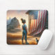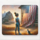 Little Girl With An American Flag On Old Barn Mouse Pad