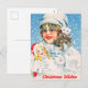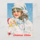 Little Girl with Doll Wish You a Merry Christmas Holiday Postcard