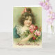 Colourful funny vintage style Father's Day design, monogram with a little girl holding rose bouquet .
