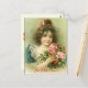 Little Girl with Pink Roses ,Get Well Soon Postcard